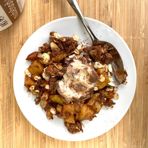 One of my favourite parts of apple crisp is the sticky sweet nectar that unites the crunchy ingredients with the fruitful warm bite of apple. I kept that the same in this recipe, but added a flavourful boost to make the oat crumble include a hint of crunchy natural chocolate peanut butter delight. This crisp is vegan and super easy to make!
